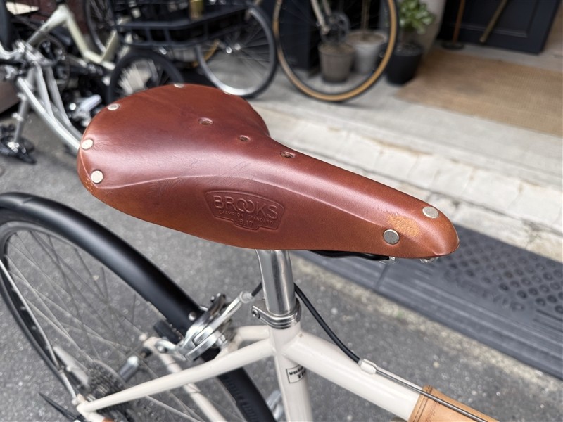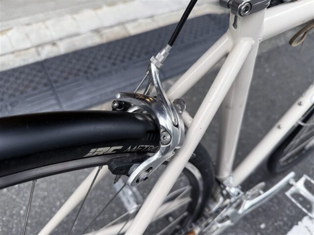 BROOKSサドルやフェンダー、センタースタンドなどが付属してますんで、そのまま街中快適コミューターとして即戦力として活躍してくれそうです。室内保管していたとは言え、年数が経過しているのでタイヤは交換してもいいかも。古のカタログ数値を見ると、水平換算のトップチューブが514.3mm。160㎝台前半の方にジャストかな?
