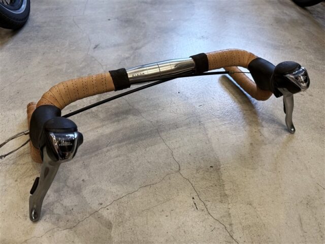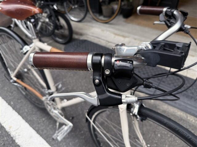 過去に現オーナーさんがドロップハンドルで使用されていた際のハンドル周りとBROOKSのバスケットもオマケでそのままお渡しします。