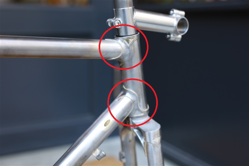 お店に用意しているサンプル車は塗装していないので、ラグ部分の溶接をじっくりご覧いただけます。塗装したら見えなくなる部分なのでオーダー時にガン見してあげてください。