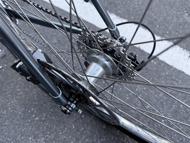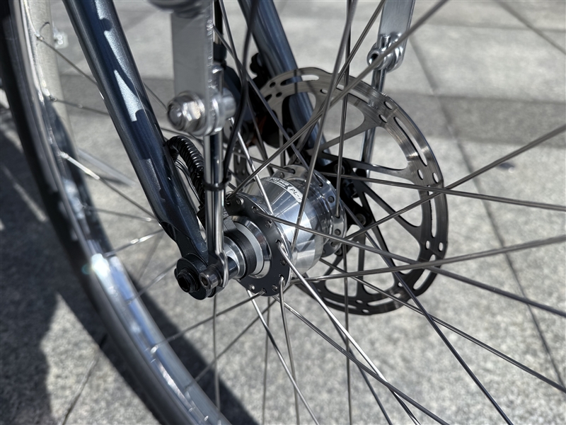 フロントハブはハブダイナモ。ハブはSP。リアハブはTICKETでは珍しいHOPE。